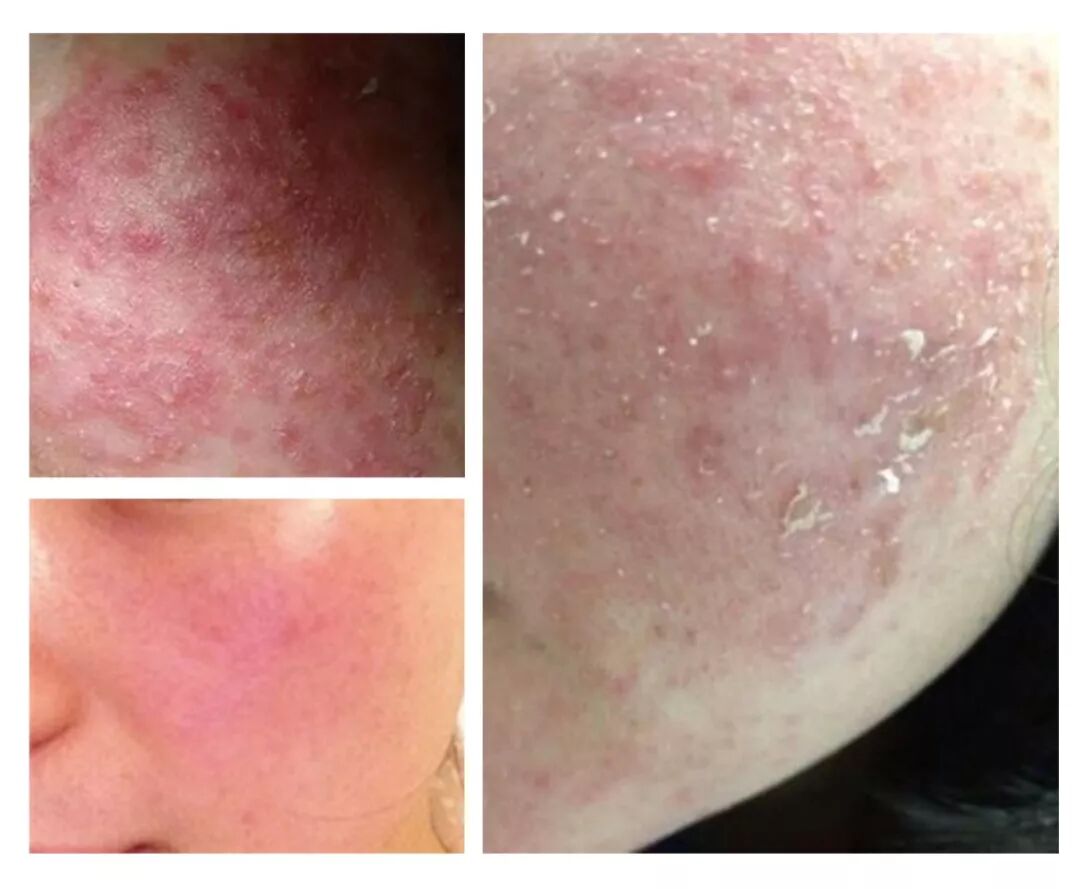 激素脸有一个共同的特征:分布较多红斑、红血丝。 “激素脸”一旦形成,治疗就非常棘手,即便联合系统用药+局部用药+物理治疗+激光治疗,完全恢复也需要半年到数年的时间,治疗期间非常痛苦。